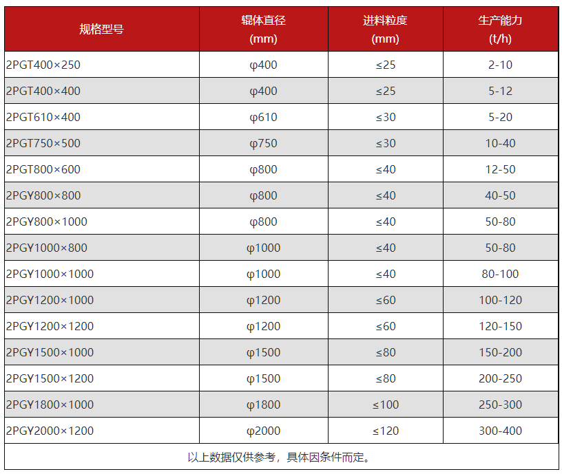 石子對輥制砂一體機型號參數(shù)